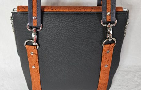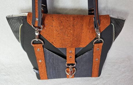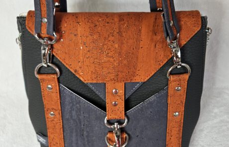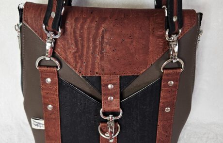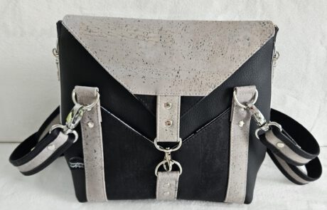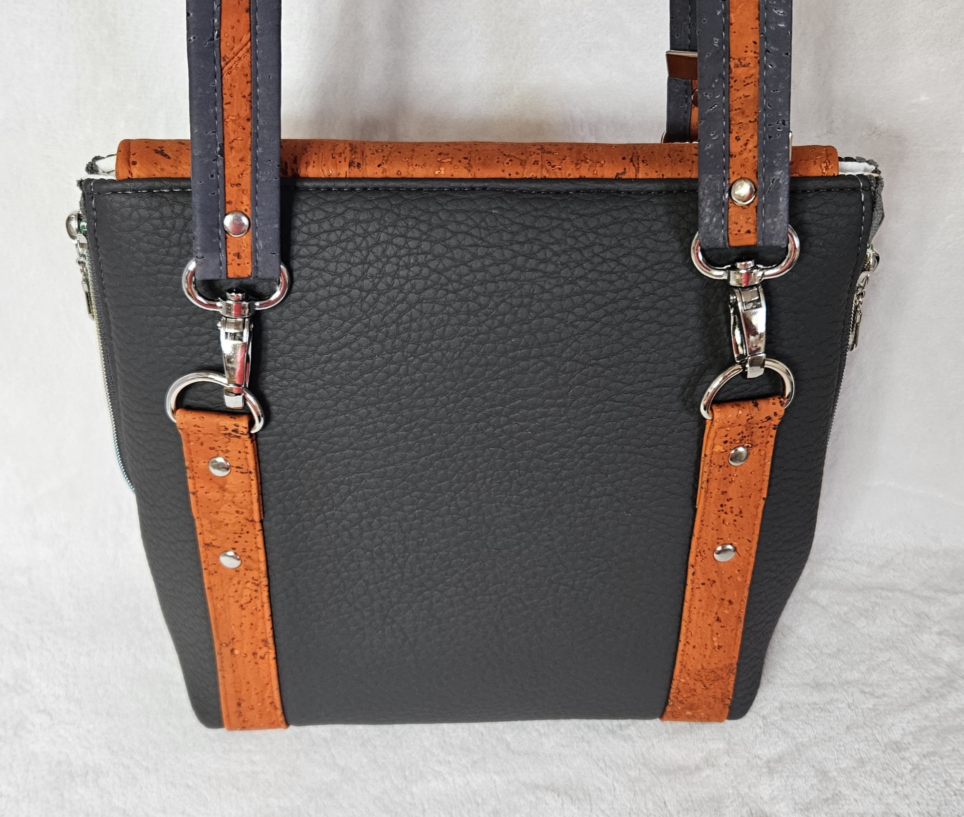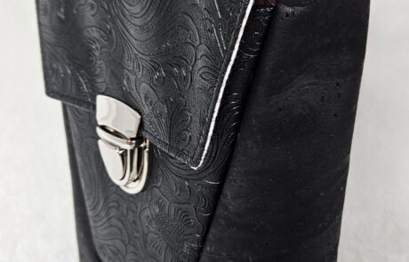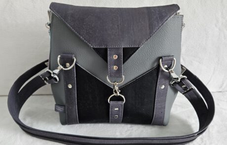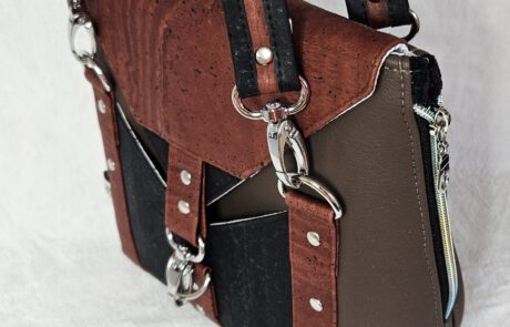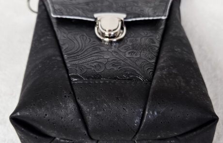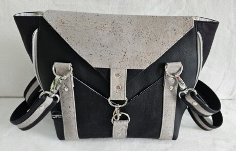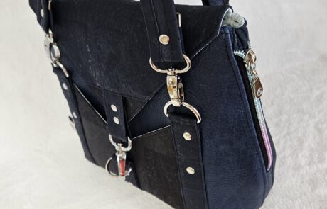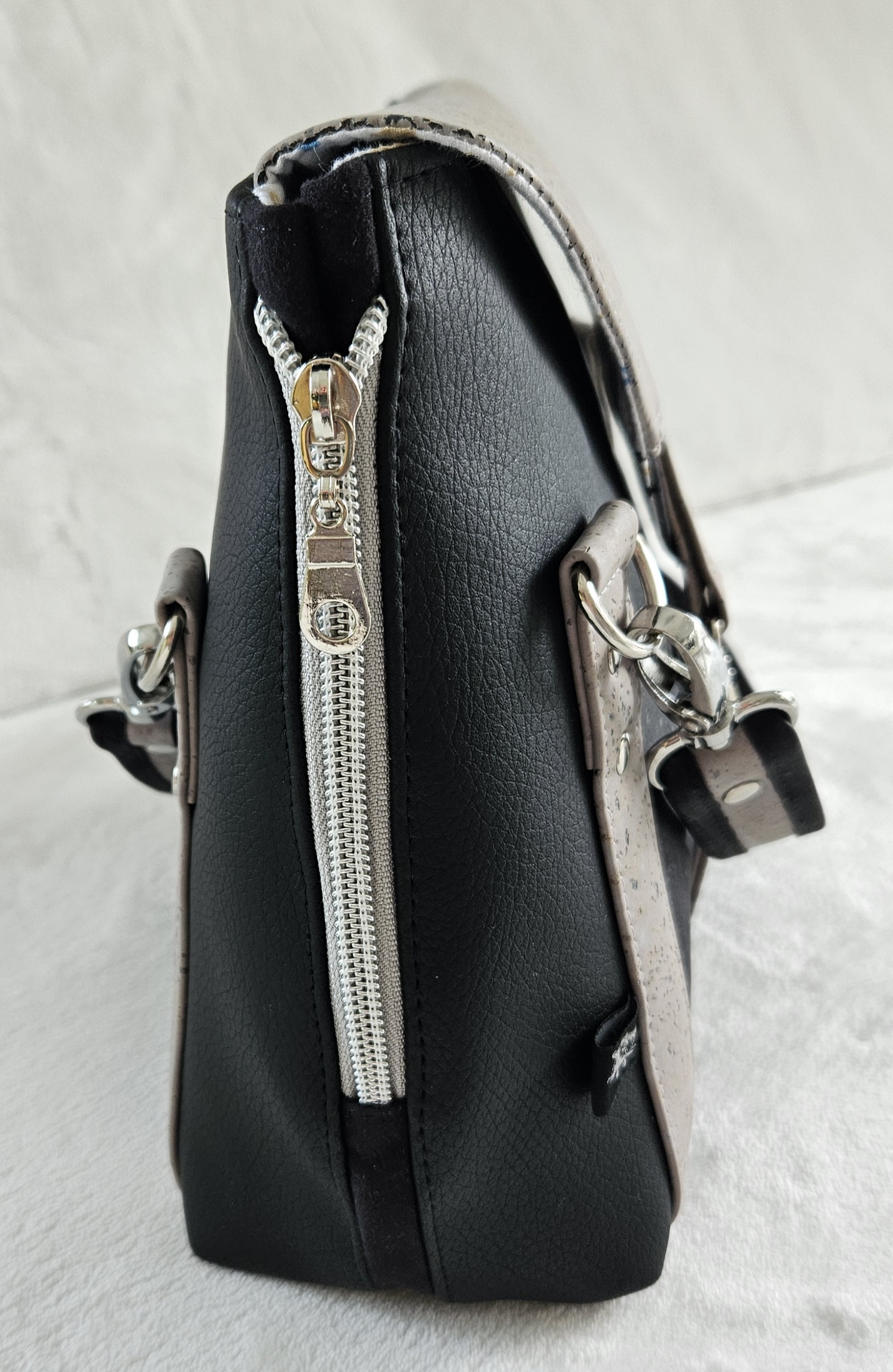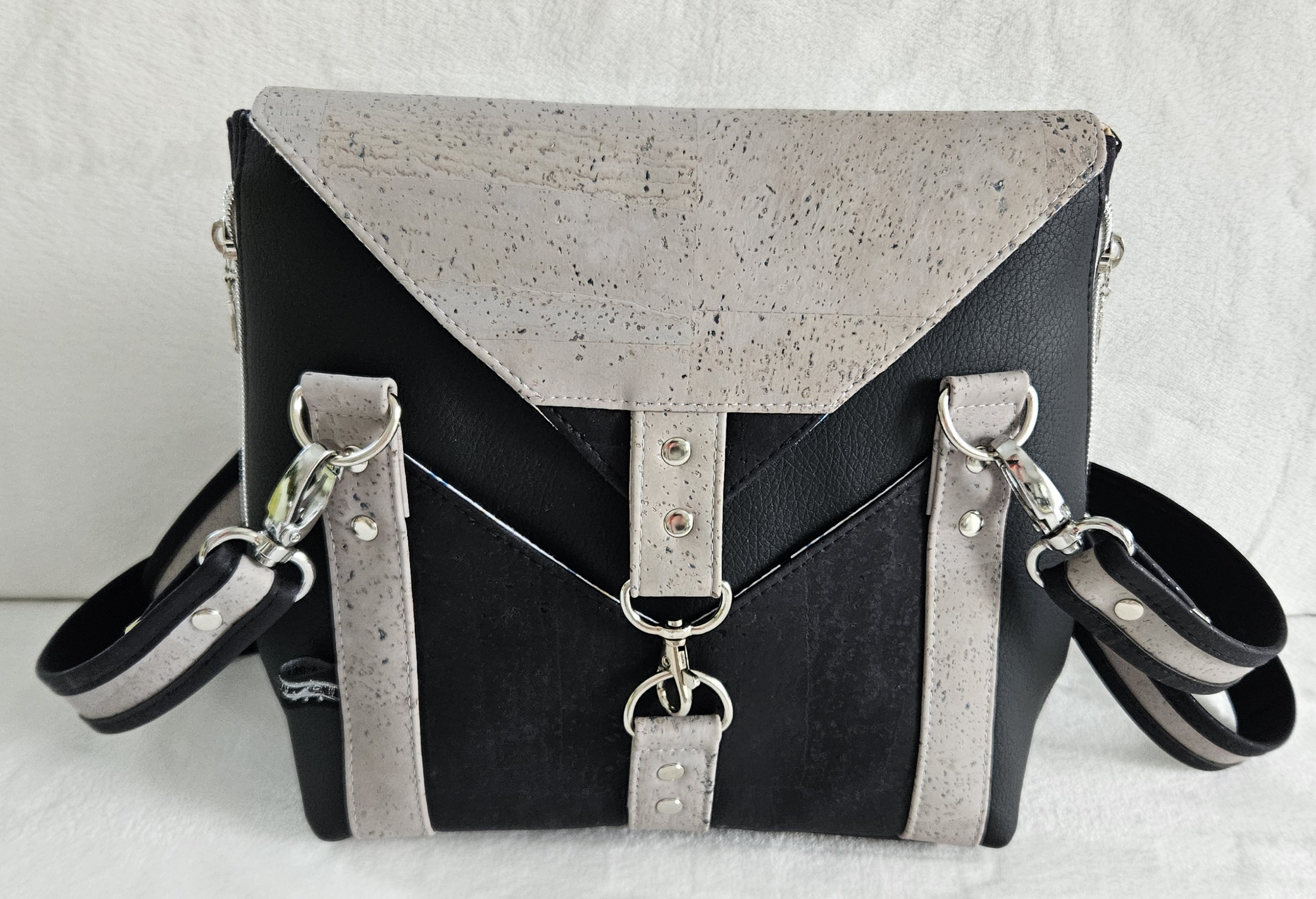 Eine perfekte Tasche aus schwarzem Kunstleder und hochwertigem Korkstoff.