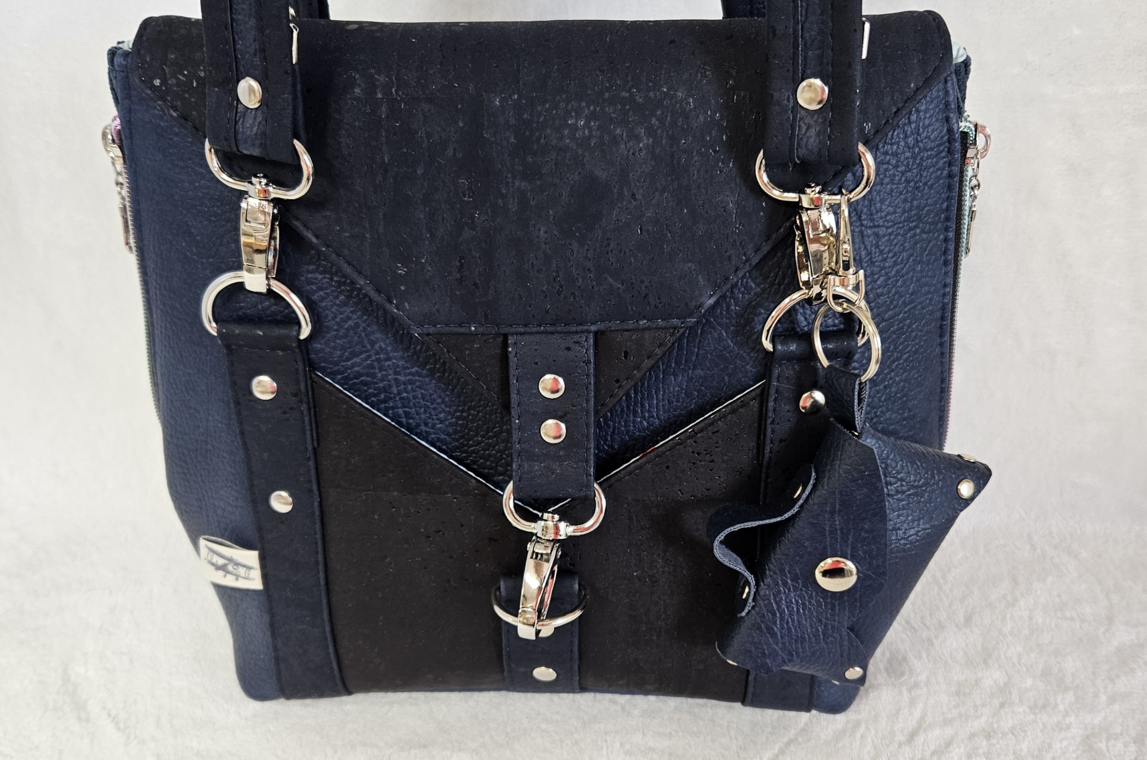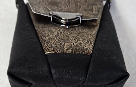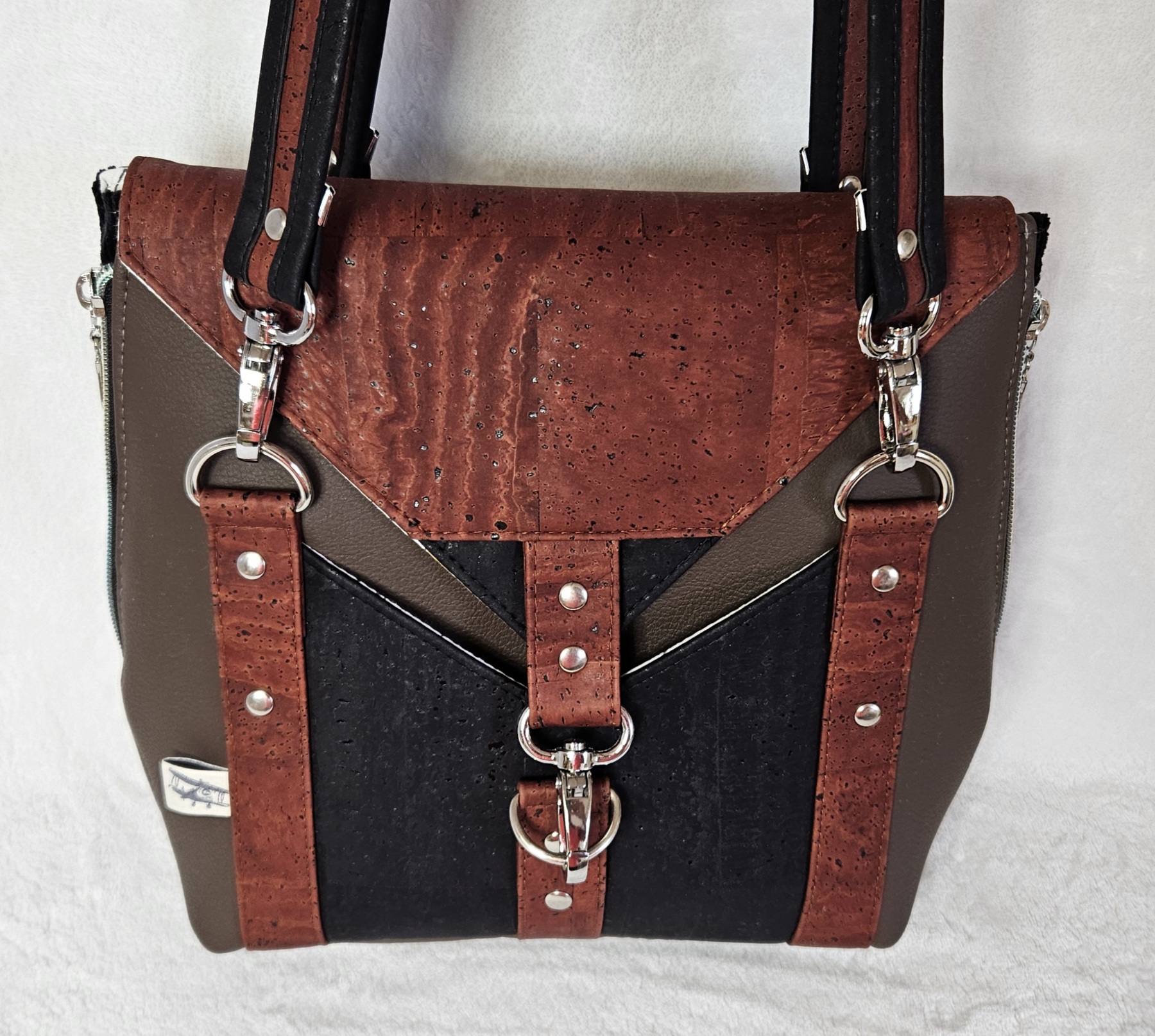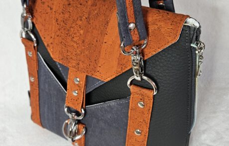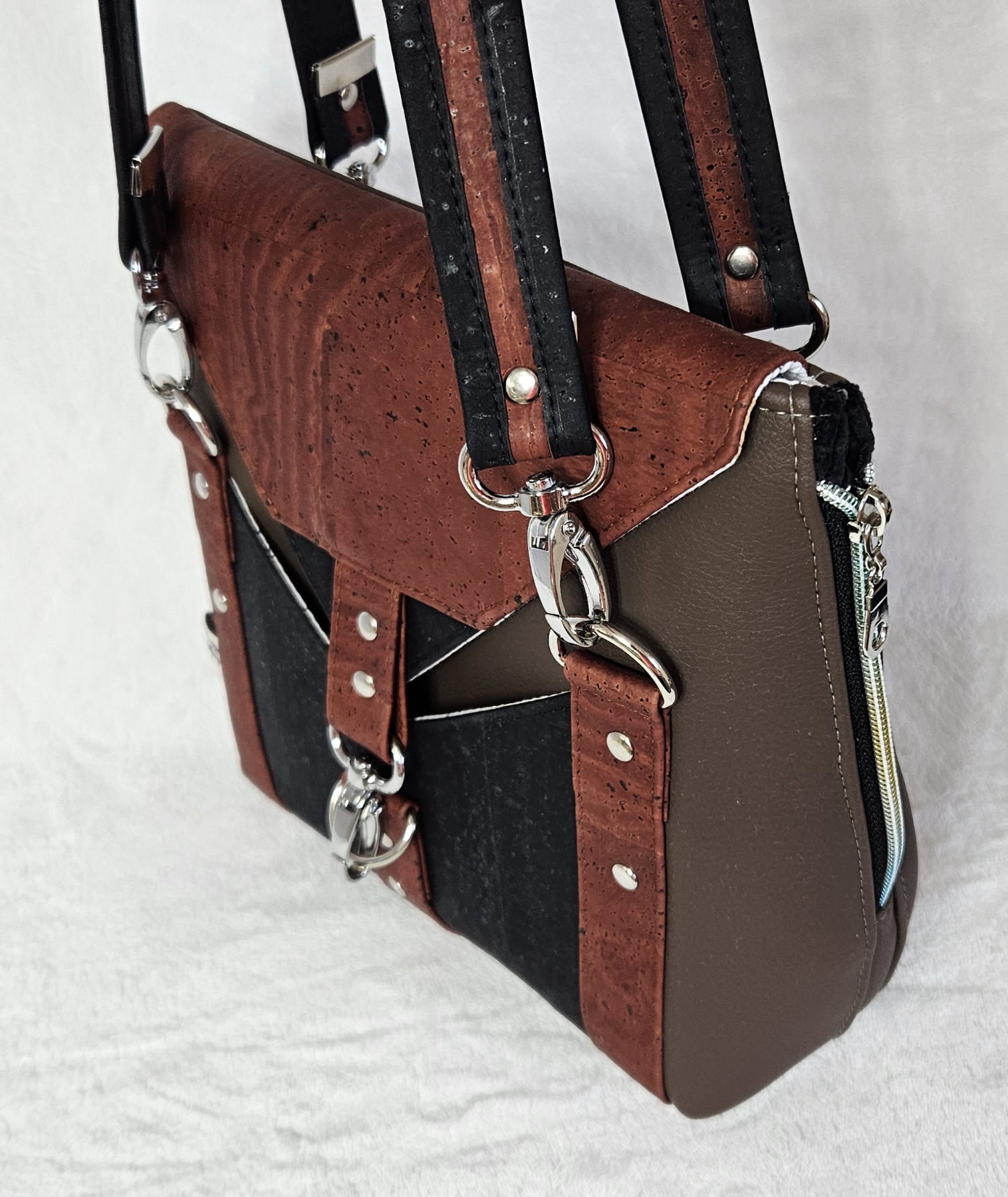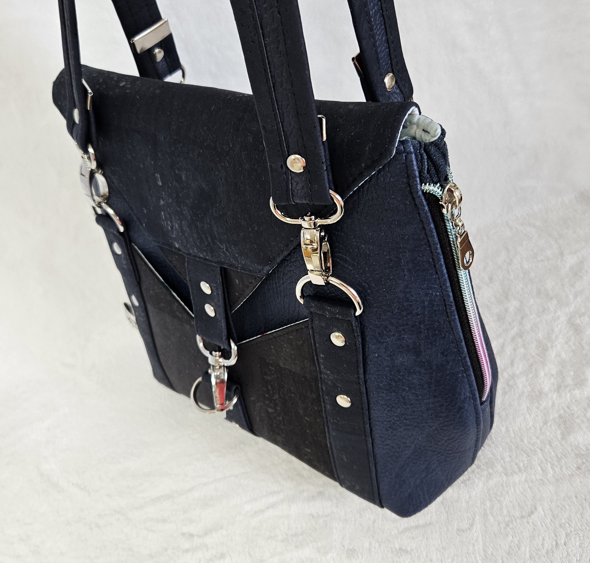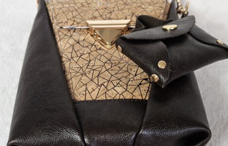 Eine perfekte Tasche aus schwarzem Kunstleder und hochwertigem Korkstoff.
