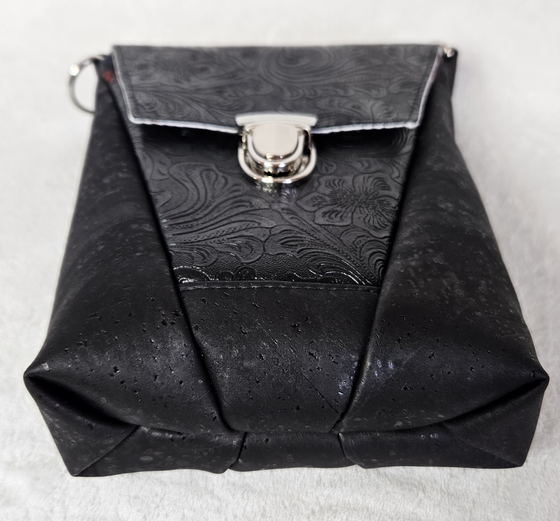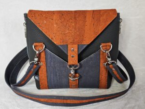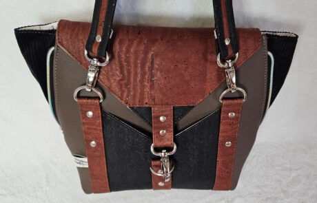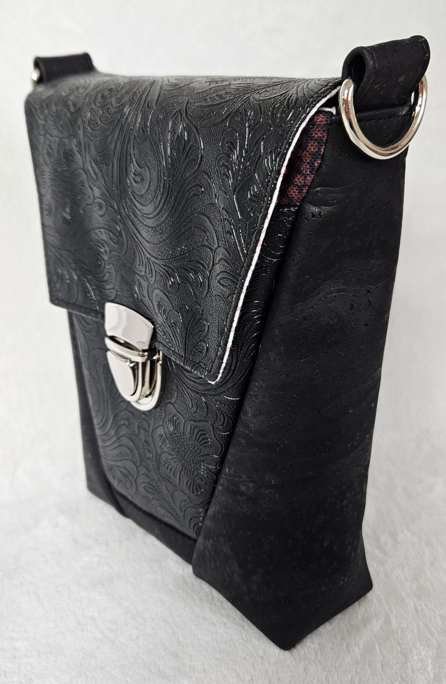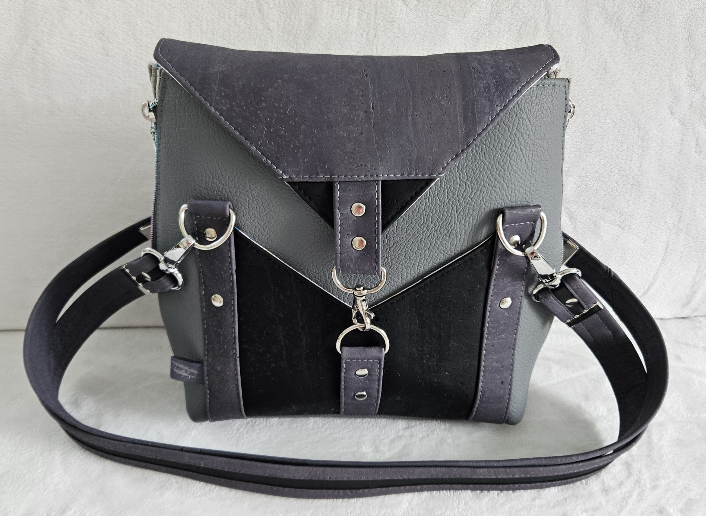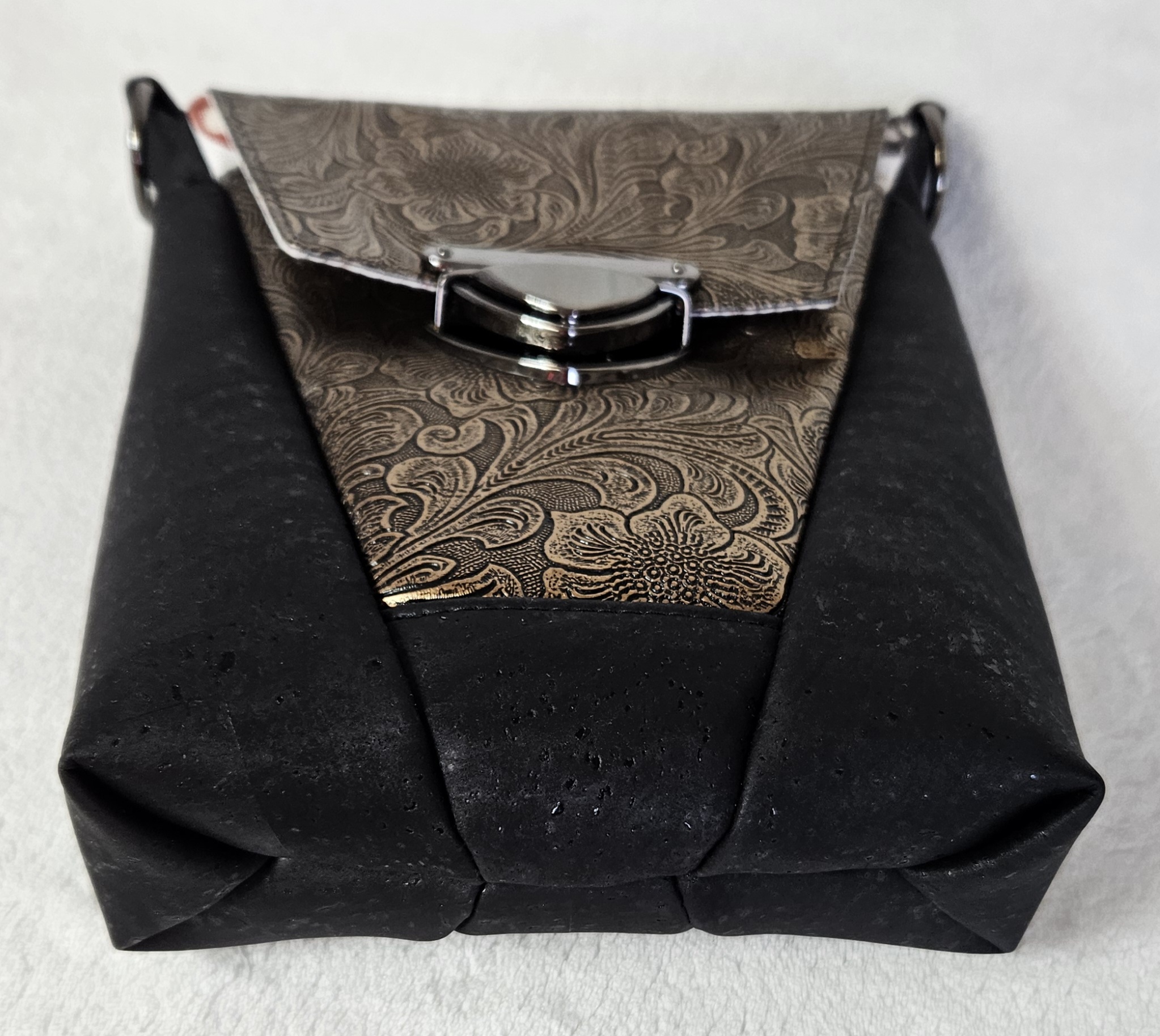 Eine perfekte Tasche aus schwarzem Kunstleder und hochwertigem Korkstoff.