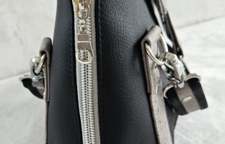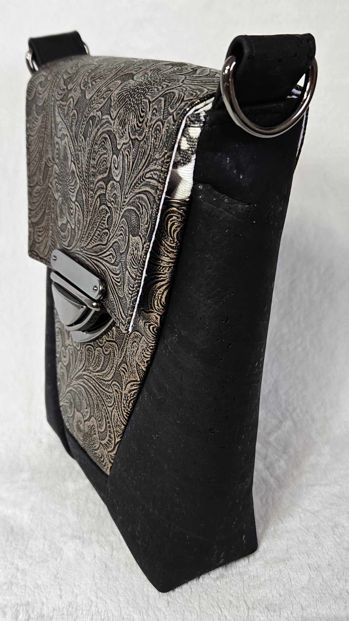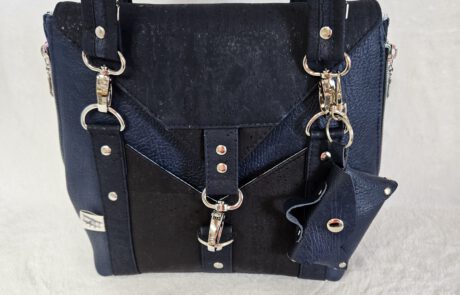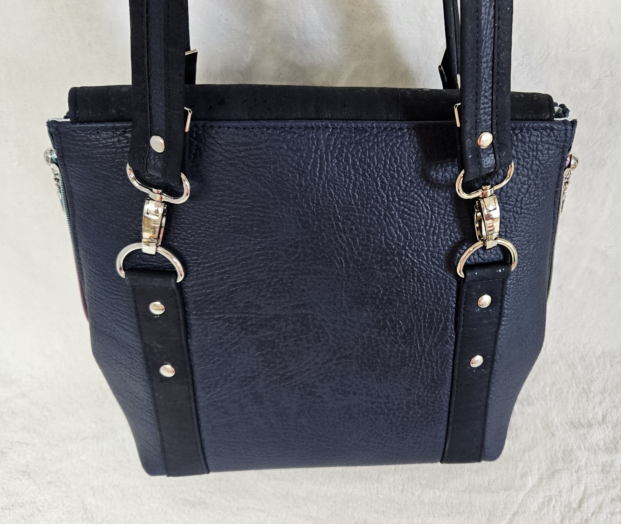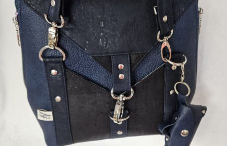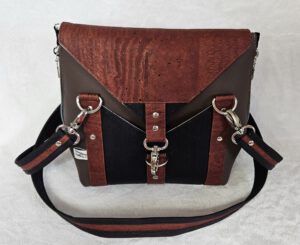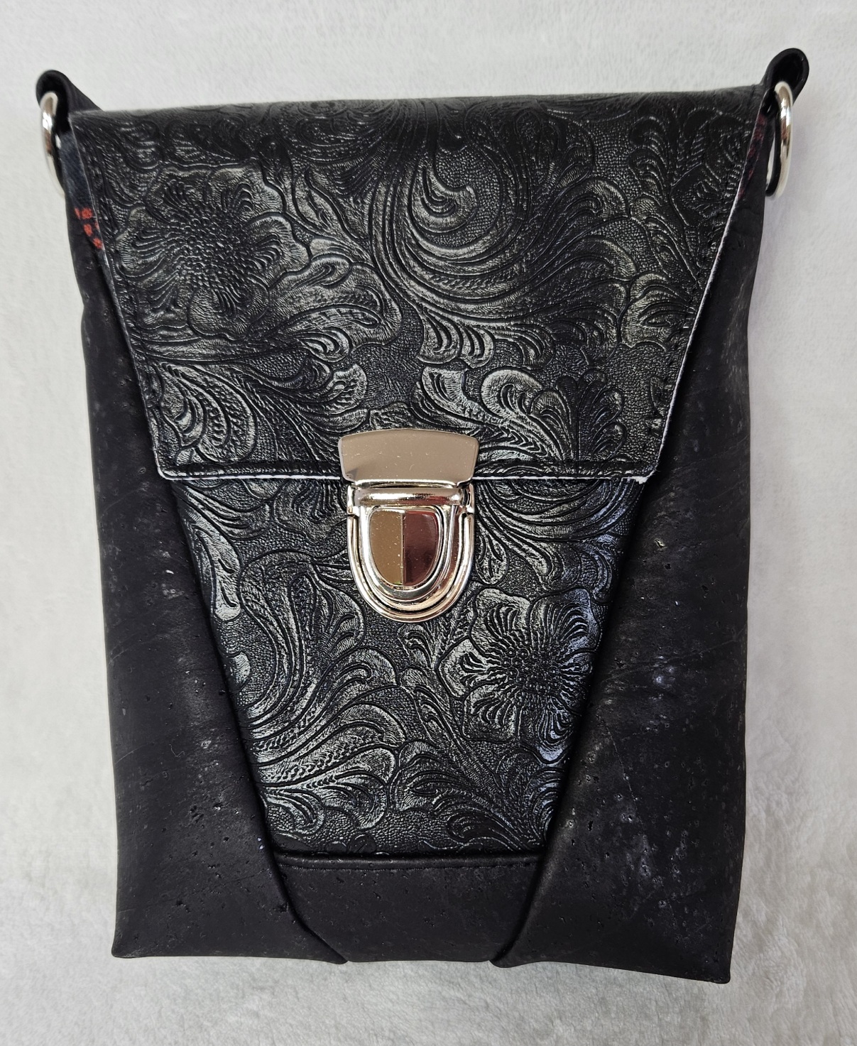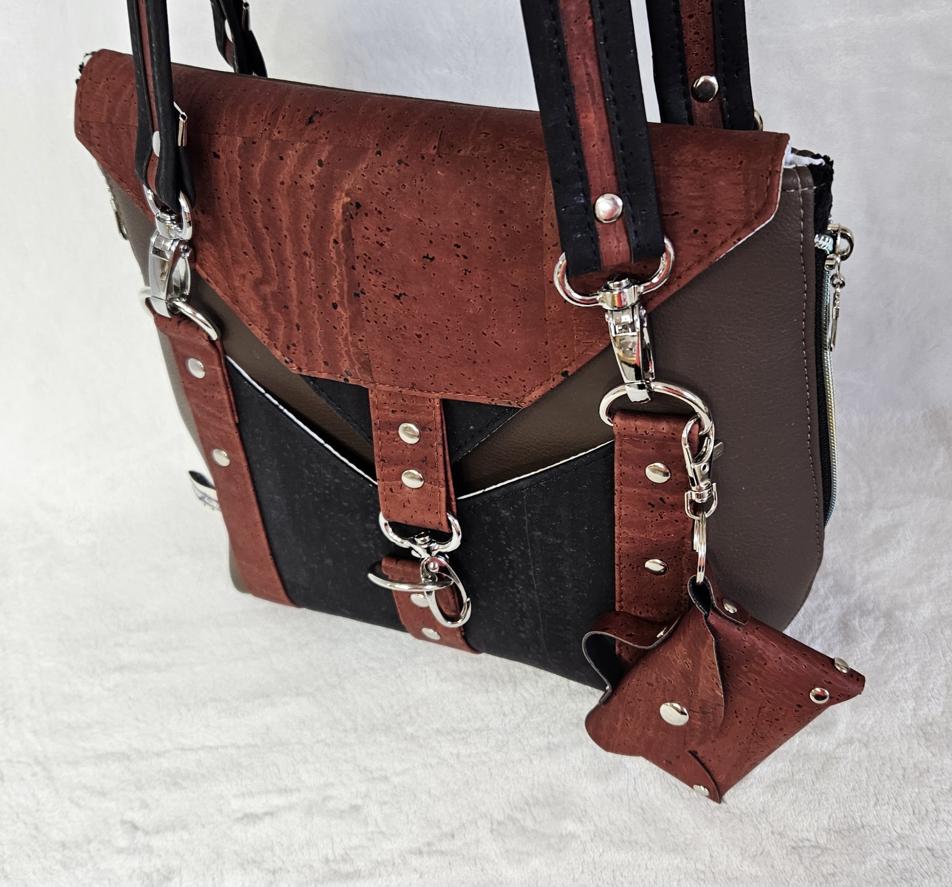 Eine perfekte Tasche aus schwarzem Kunstleder und hochwertigem Korkstoff.