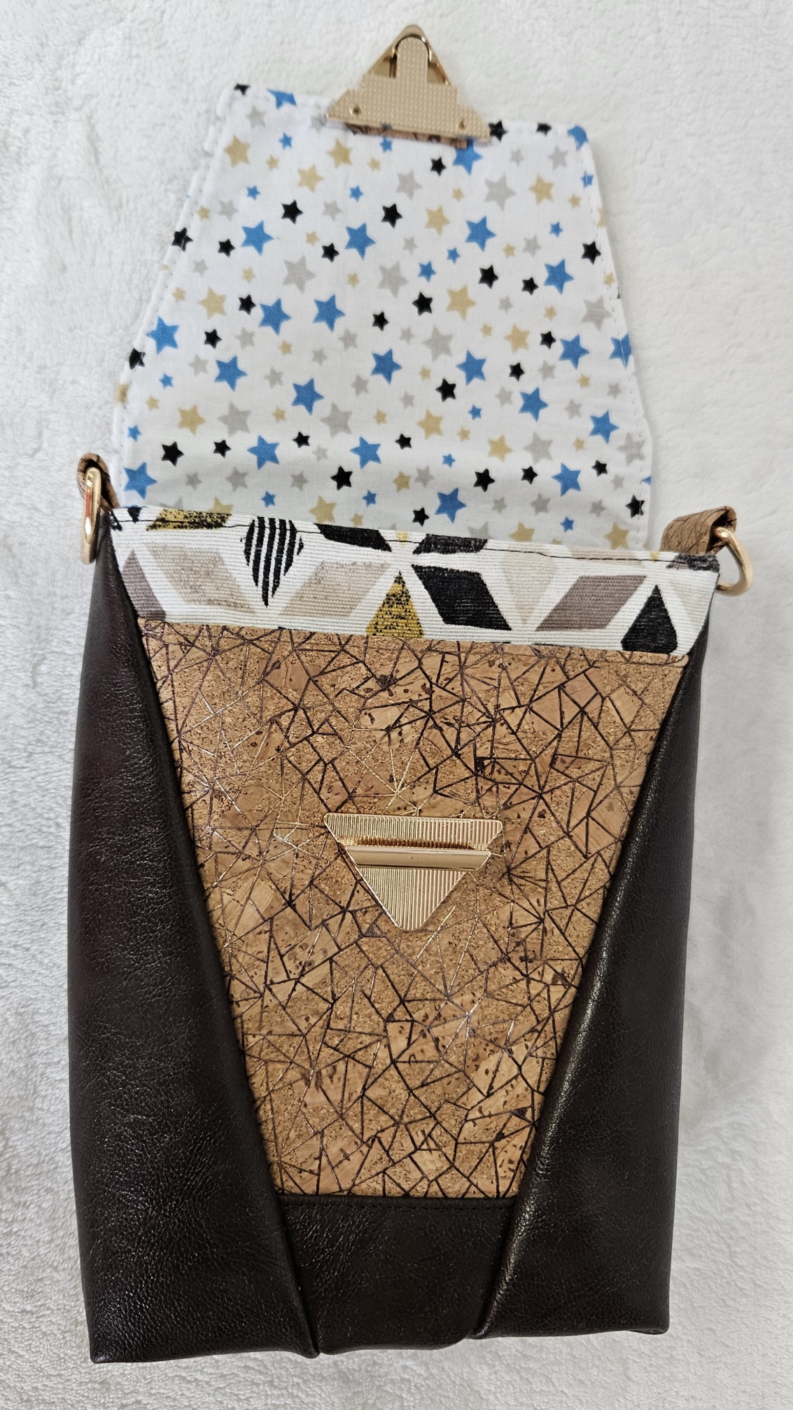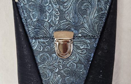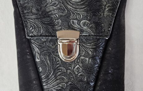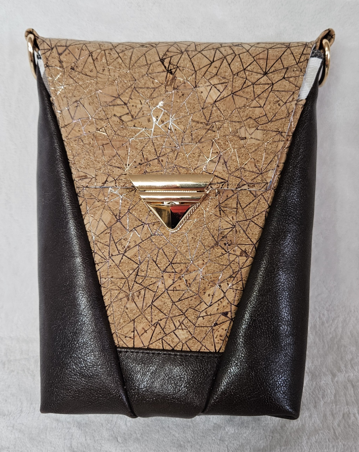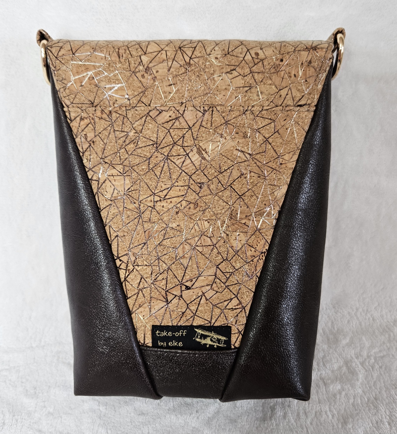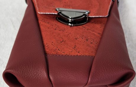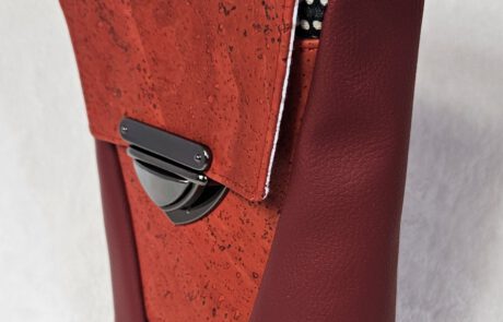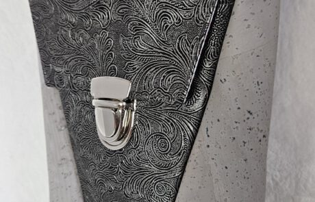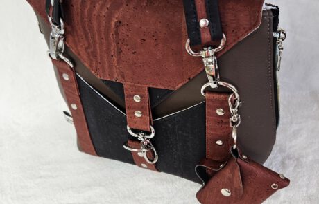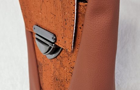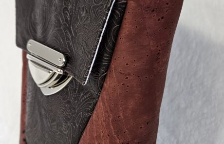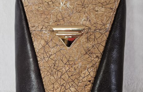 Aus schwarzem Kunstleder und abgesetzt mit hochwertigem Korkstoff.
