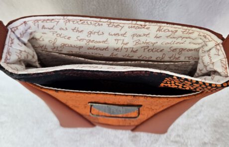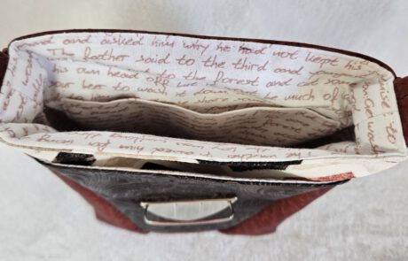 Diesmal habe ich den Stoff mit einem Textilmedium beschichtet. So ist der Stoff besser geschützt, die Tasche hat einen leichten Glanz erhalten und Flecken können abgewaschen werden.