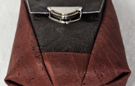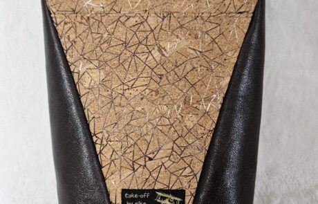 Aus schwarzem Kunstleder und hochwertigem Korkstoff.