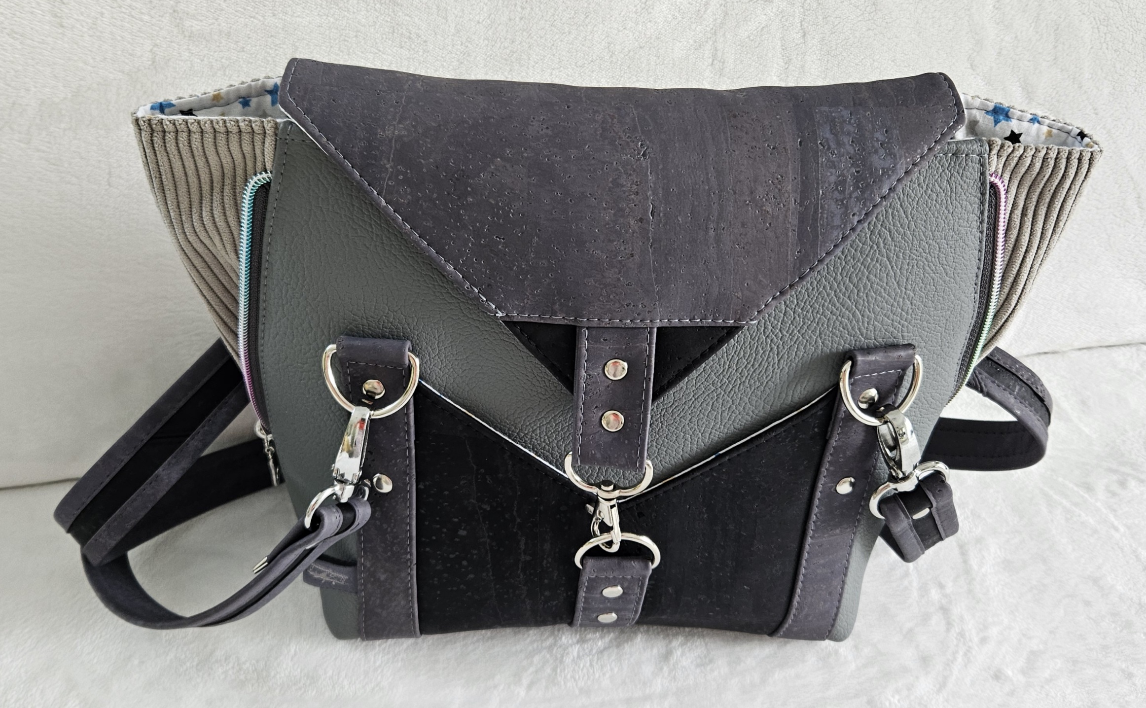 Ein Canvas Outdoorstoff mit Korkstoff und Möbelstoff abgesetzt. Baugleich meinem zweiten Modell.