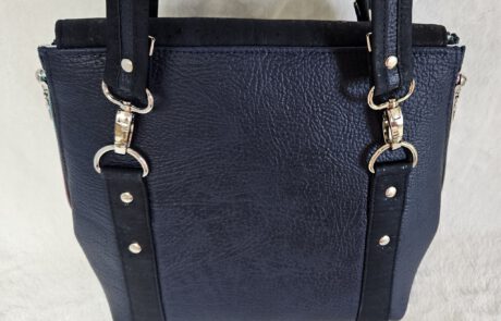 Ein Baumwoll-Canvas mit schwarzem Kunstleder abgesetzt.